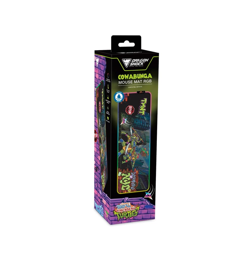 Level up your setup with the DragonShock Ninja Wave RGB XL, a premium extended gaming mouse pad designed to combine style and performance. Featuring an officially licensed Ninja Turtle design, this ultra-large 300 x 900 mm surface offers ample space for both your mouse and keyboard, giving you maximum freedom of movement.